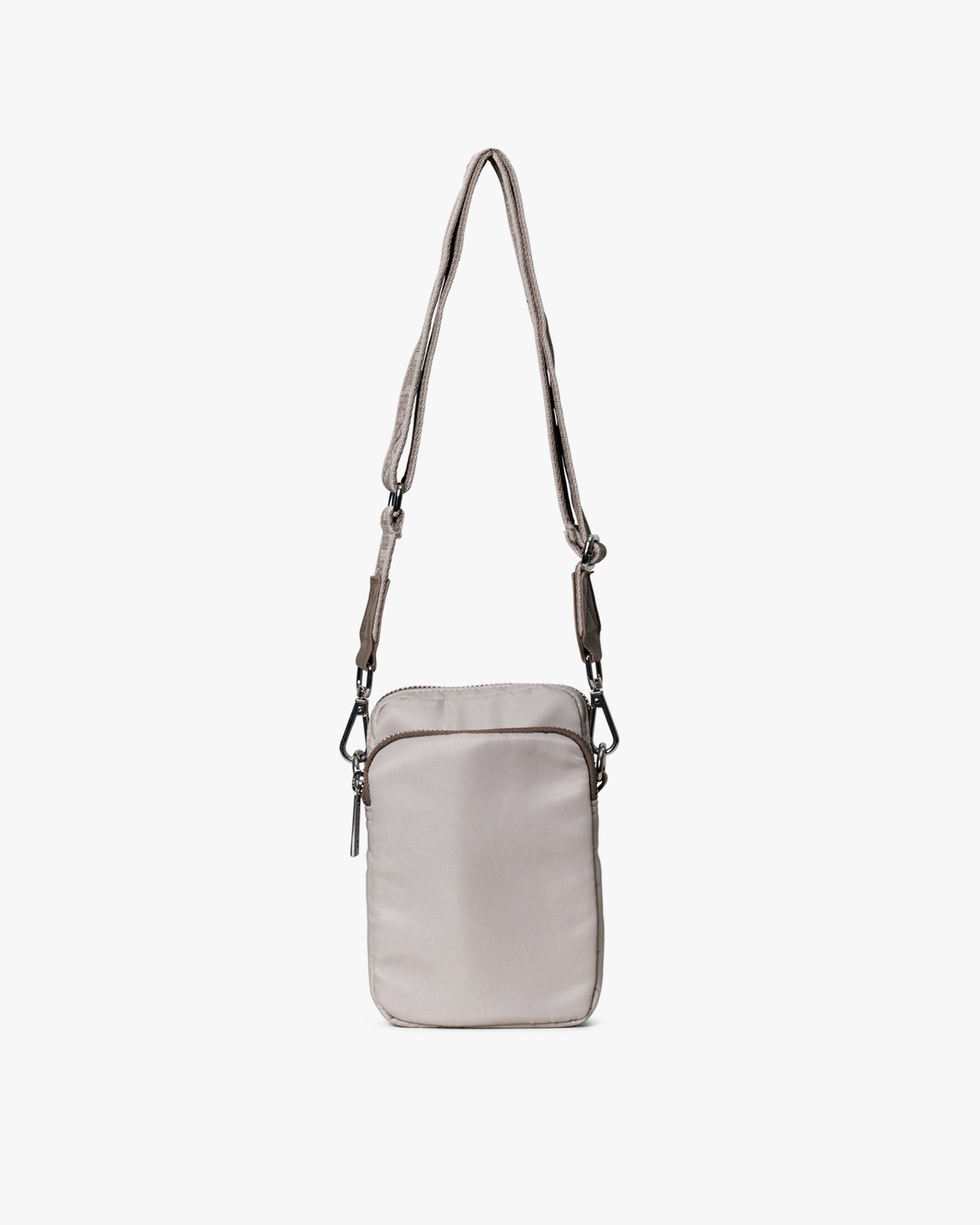 This small, practical bag is perfect for your most important belongings and has both a main compartment and front pocket with a zip closure. The adjustable crossbody strap with logo detail makes it comfortable to wear, and the bag’s look is enhanced by contrast coloured zips and small faux leather details. The bag is made from 100% certified recycled material.