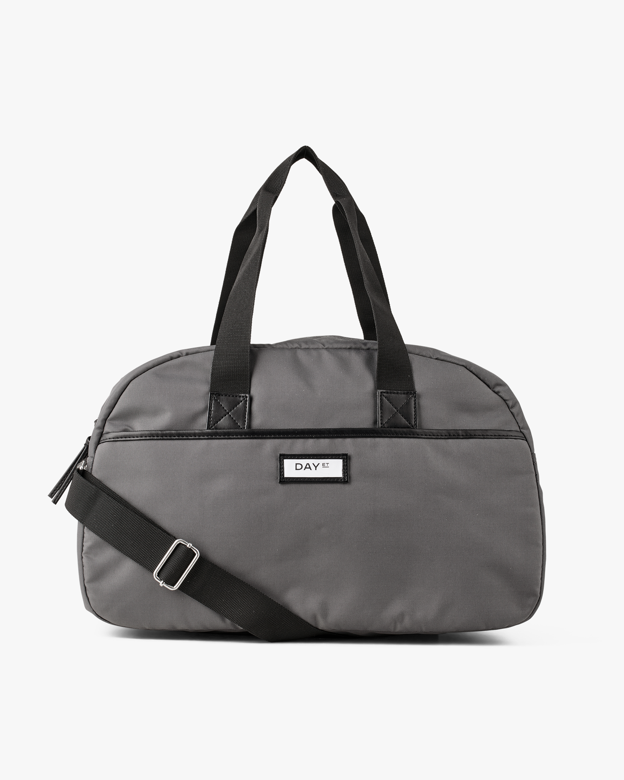 This bag is perfect for a small getaway. The outer fabric and the inner lining is made of 100% certified recycled material. In the spacious main compartment you can store everything you need for a couple of overnight stays, and in the inside zipper pocket you can keep your smaller items. The bag has two shorter handles and a detachable and adjustable strap, so you can both carry it over the shoulder and as a crossbody. The bag also has a front pocket and a strap on the back, so it can be put over the handle of a suitcase.